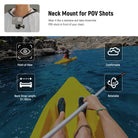 Soporte para el cuello para tomas en primera persona : el soporte para el cuello GP15 de NEEWER para cámara de acción y teléfono se puede usar como un collar para tomas en primera persona y grabaciones de video inmersivas directamente frente a su pecho. Cuenta con un botón de liberación rápida (flecha superior izquierda) que puede liberar la correa para el cuello para usarla sin esfuerzo. La correa para el cuello mide 24" (60 cm) de largo cuando está completamente estirada