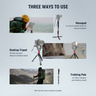 • Base de monopié multiángulo ajustable : Con una base de trípode desmontable y ajustable, el monopié permite un giro de 360° y una inclinación de 45°, pudiendo colocarse horizontal o verticalmente hasta 90°. Gracias a una práctica perilla de bloqueo vertical, el soporte se mantiene estable en terrenos irregulares, ideal para tomas desde ángulos bajos, fotografía deportiva, bodas y paisajes urbanos. Las patas del trípode por sí solas también permiten convertirlo en un trípode de escritorio.