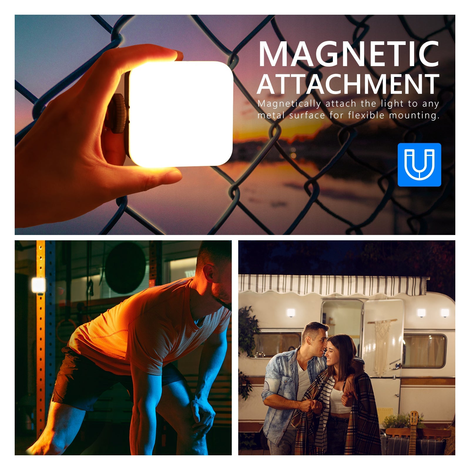 - Diseño magnético : diseñado con un imán integrado en la parte posterior de la luz para sujetarlo a cualquier superficie magnética. Captura fotos o videos creativos con esta luz liviana de bolsillo. El difusor de luz suaviza la luz para juegos, videos de YouTube, selfies, fiestas, vlogs, fotografías de naturaleza muerta, fotografías de retratos, fotografías de niños y más.