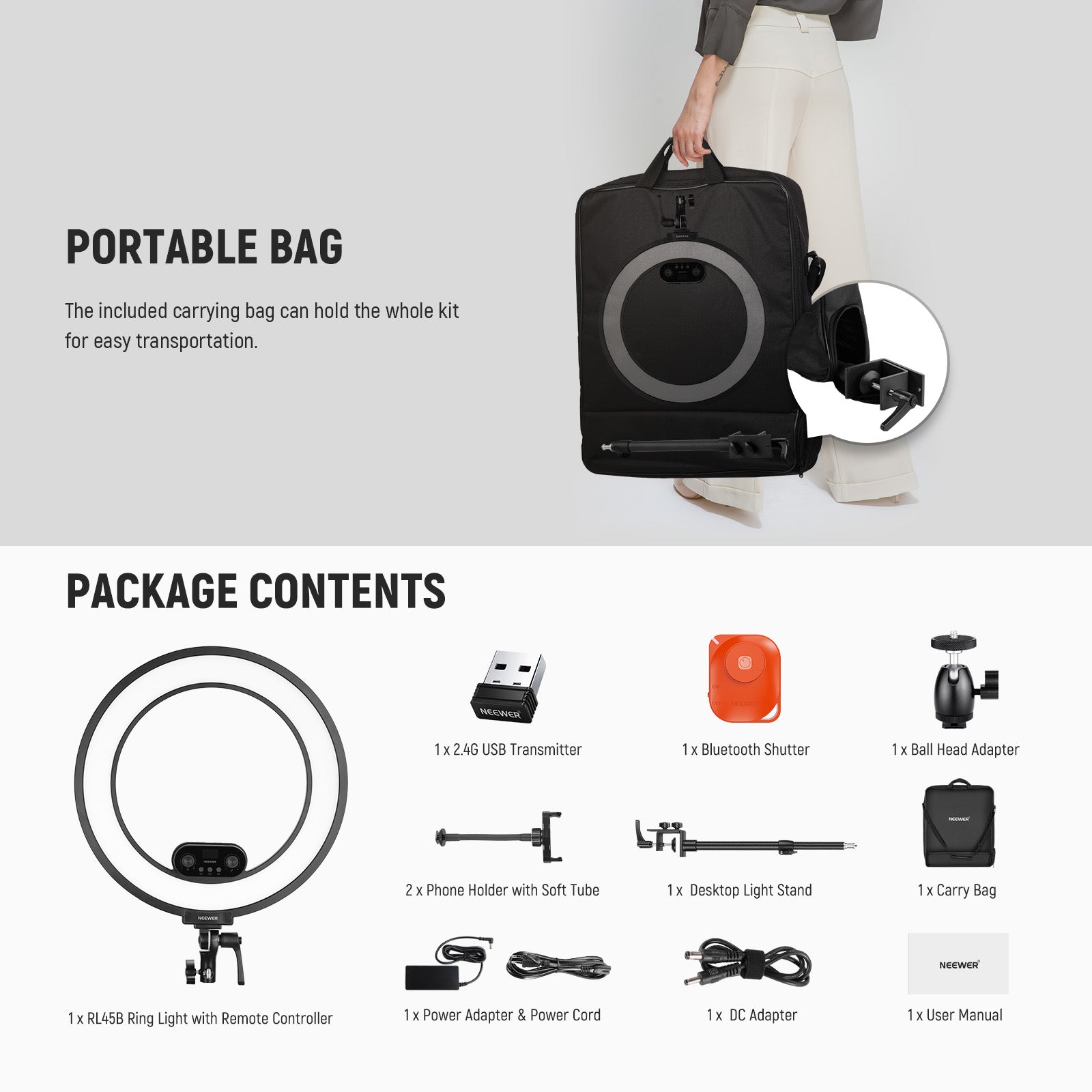 NEEWER RL45B 45W 18" Kit de Luz de Anillo Iluminado de Borde Delgado