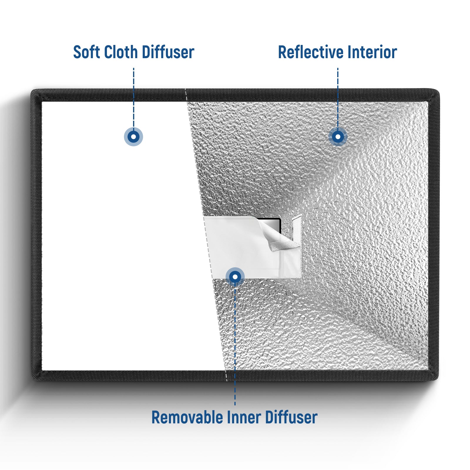 - El difusor interno extraíble y el interior plateado reflectante mejorado mejoran el efecto de iluminación difusa.