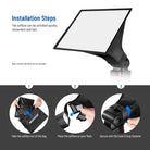 - Simplemente despliegue el difusor y coloque la cinta de sujeción frontal y estará listo para la fotografía profesional.