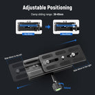 - La abrazadera puede sujetar un telescopio o un anillo de teleobjetivo a través de las colas de milano estándar. Con un orificio roscado de 3/8”, combinado con los adaptadores de tornillo incluidos de 3/8” a 1/4”, la abrazadera puede caber en un soporte de iluminación, rótula de bola, trípode, monopié y más.