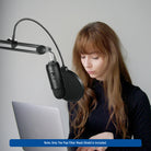 - La abrazadera ajustable se fija de forma segura a cualquier soporte de micrófono.