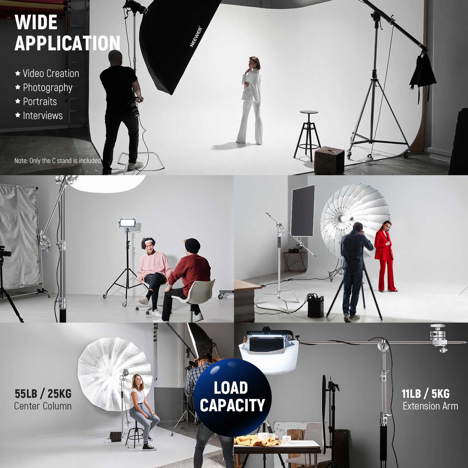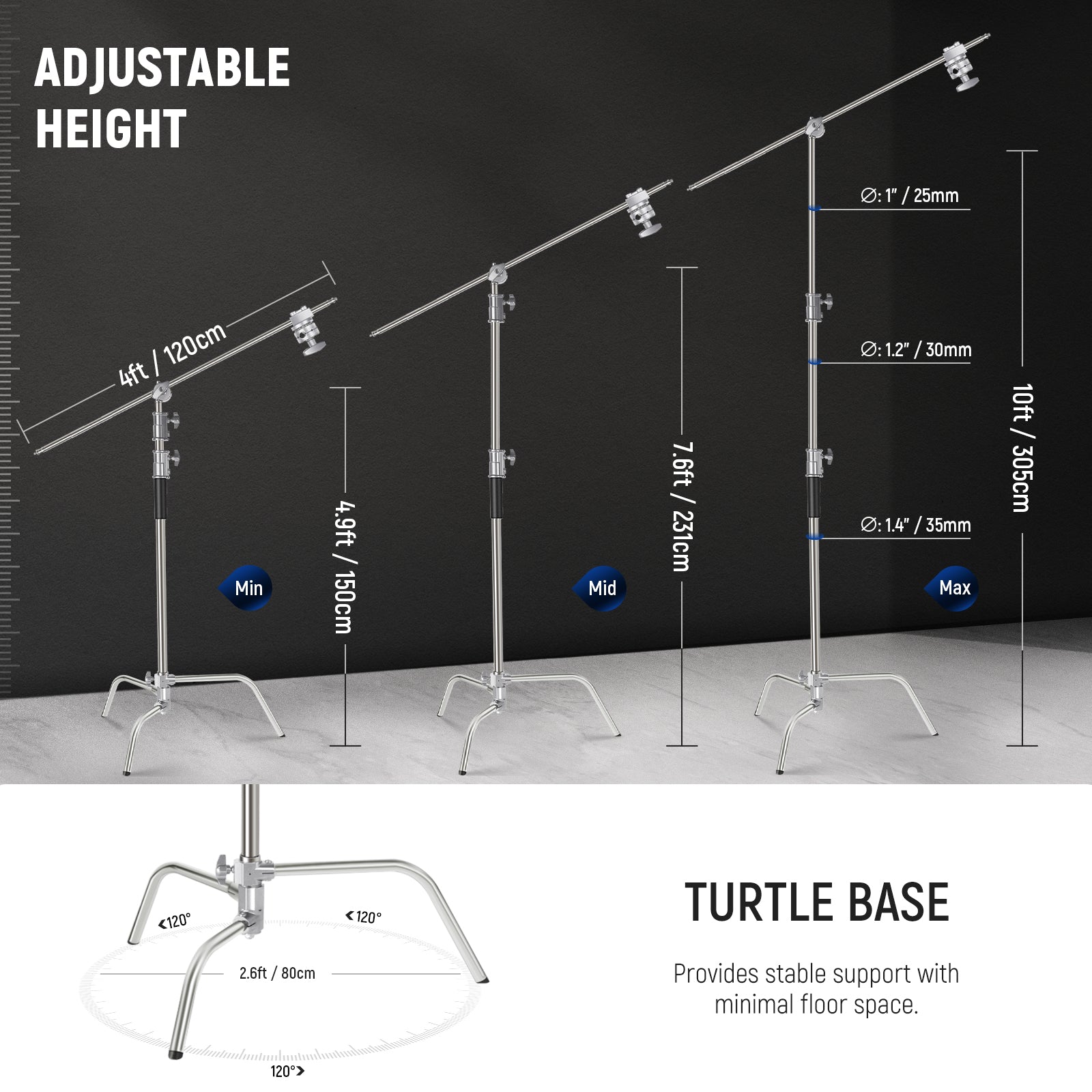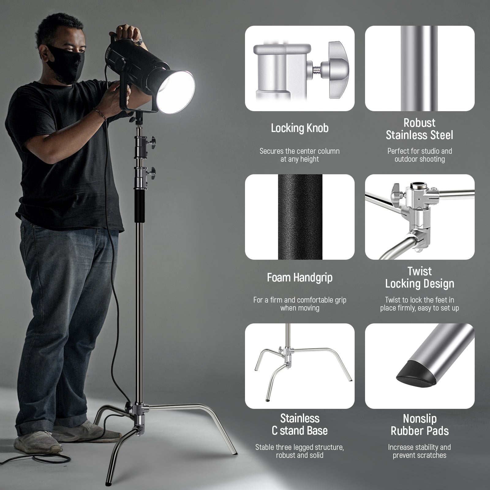 NEEWER Soporte de luz con soporte en C de acero inoxidable de 305 cm