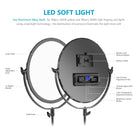 - Iluminación ajustable libremente: equipada con 180 LED de color blanco frío y 180 de color blanco cálido, esta luz redonda cuenta con una salida de luz brillante y variables de iluminación bicolor de 3200 K a 5600 K. El alto CRI 95+ garantiza una reproducción fiel del color. Use los botones de control para ajustar el brillo y la temperatura del color para obtener la mejor iluminación, y una pantalla LCD que muestra claramente las lecturas puede ayudarlo a ajustar con facilidad.