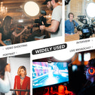 - Fuentes de alimentación duales: conecte la luz redonda a una toma de pared a través del adaptador de CA y enciéndala con la red eléctrica. Una placa de montaje en V en la parte posterior le permite usar una batería de montaje en V o dos baterías NP-F (se necesita un convertidor F2-BP) como fuente de alimentación para fotografías al aire libre (la batería de montaje en V, las baterías NP-F y el convertidor F2-BP no están incluidos)