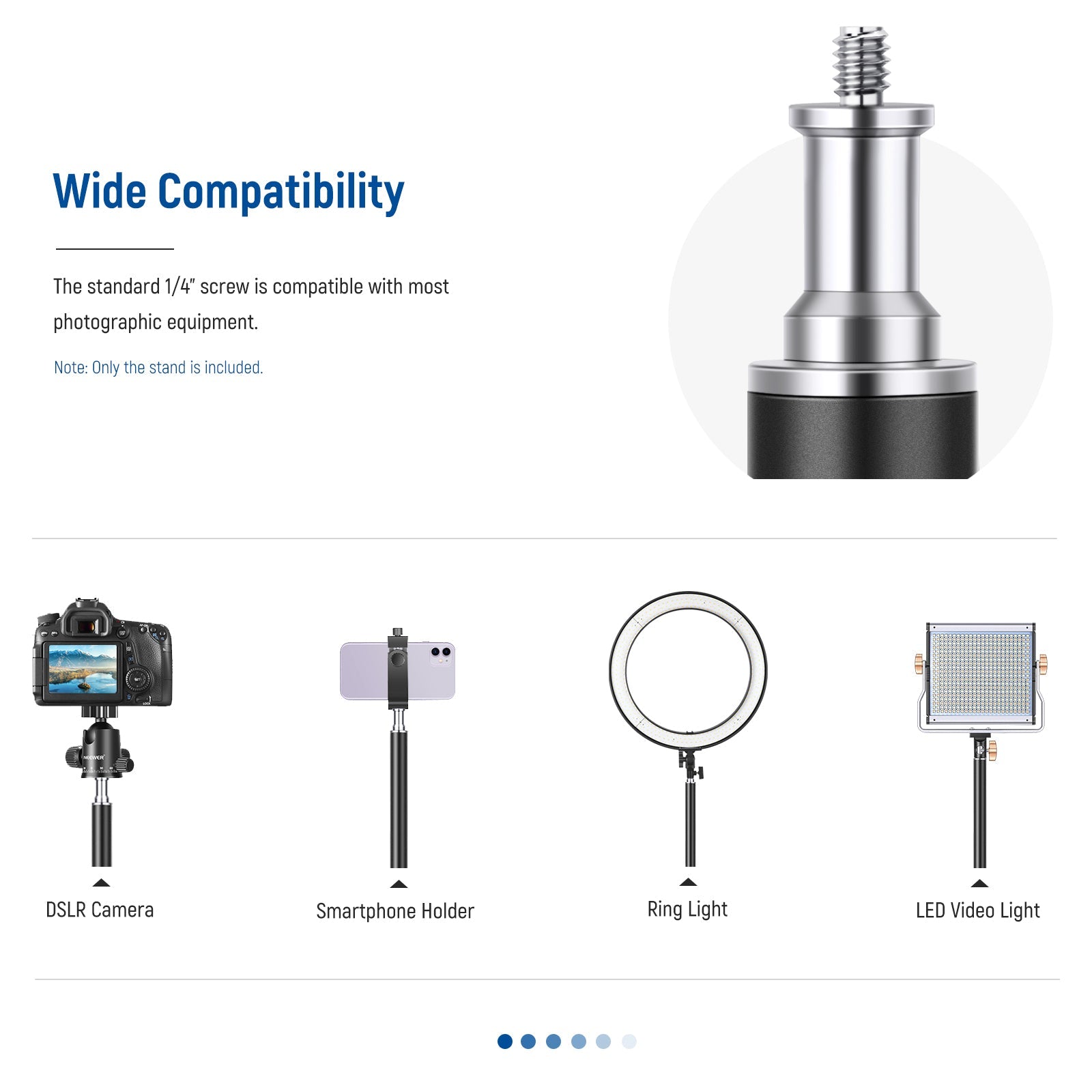 Nota: Solo compatible con micrófono Nano y otros micrófonos con orificio roscado de 1/4”. Si desea montar un micrófono con un orificio roscado de 3/8” o 5/8”, se requiere un adaptador de tornillo compatible (no incluido).