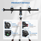 - Estable y resistente : el brazo transversal de aleación de aluminio de gran diámetro de 25 mm proporciona mayor estabilidad y capacidad de carga. Con una longitud de 62 cm/25 pulgadas y una capacidad de carga de hasta 10 kg/22 lb, el brazo reduce el movimiento manual de la cámara y la fatiga habitual que experimenta el fotógrafo.