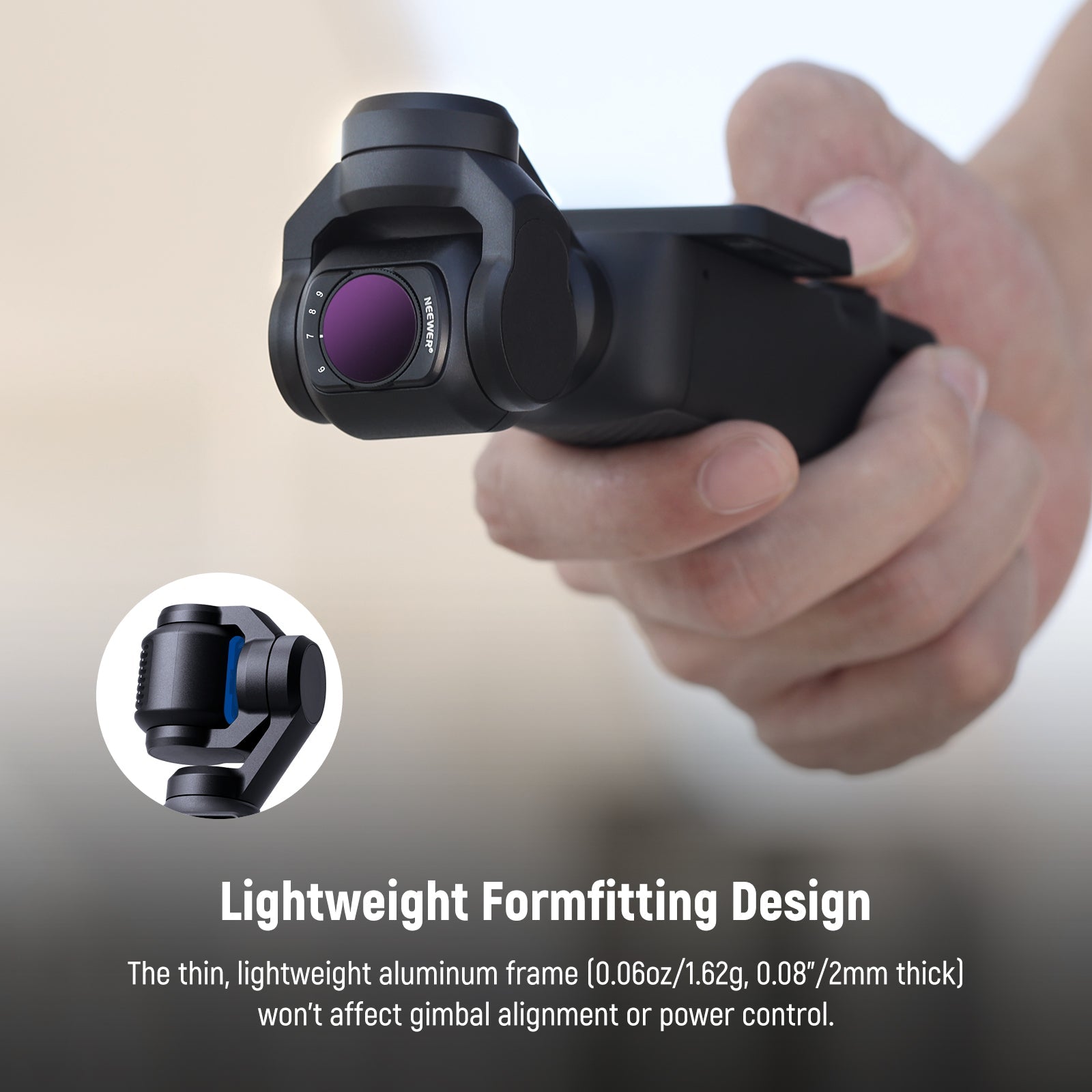 - Dedicado a OSMO Pocket 3 : Presentamos el nuevo e imprescindible kit de filtros ND variables magnéticos, compatible con DJI OSMO Pocket 3, con fijación magnética instantánea y segura. Cuenta con cristal óptico HD para obtener imágenes nítidas al grabar vlogs y es una innovación para los entusiastas de las cámaras de mano con estabilizador que buscan optimizar la velocidad de obturación, minimizar el deslumbramiento, enriquecer los colores y lograr una exposición impecable en diversas condiciones climáticas.
