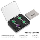 - Fijación magnética rápida y segura : El diseño magnético garantiza cambios de filtro rápidos en tan solo 1 segundo y proporciona un agarre seguro al usar el seguimiento automático, fotografiar deportes al aire libre o alternar entre disparos horizontales y verticales. El marco ligero de aluminio mecanizado con precisión CNC (1,62 g cada uno) se ajusta perfectamente al estabilizador sin afectar su calibración ni almacenamiento.