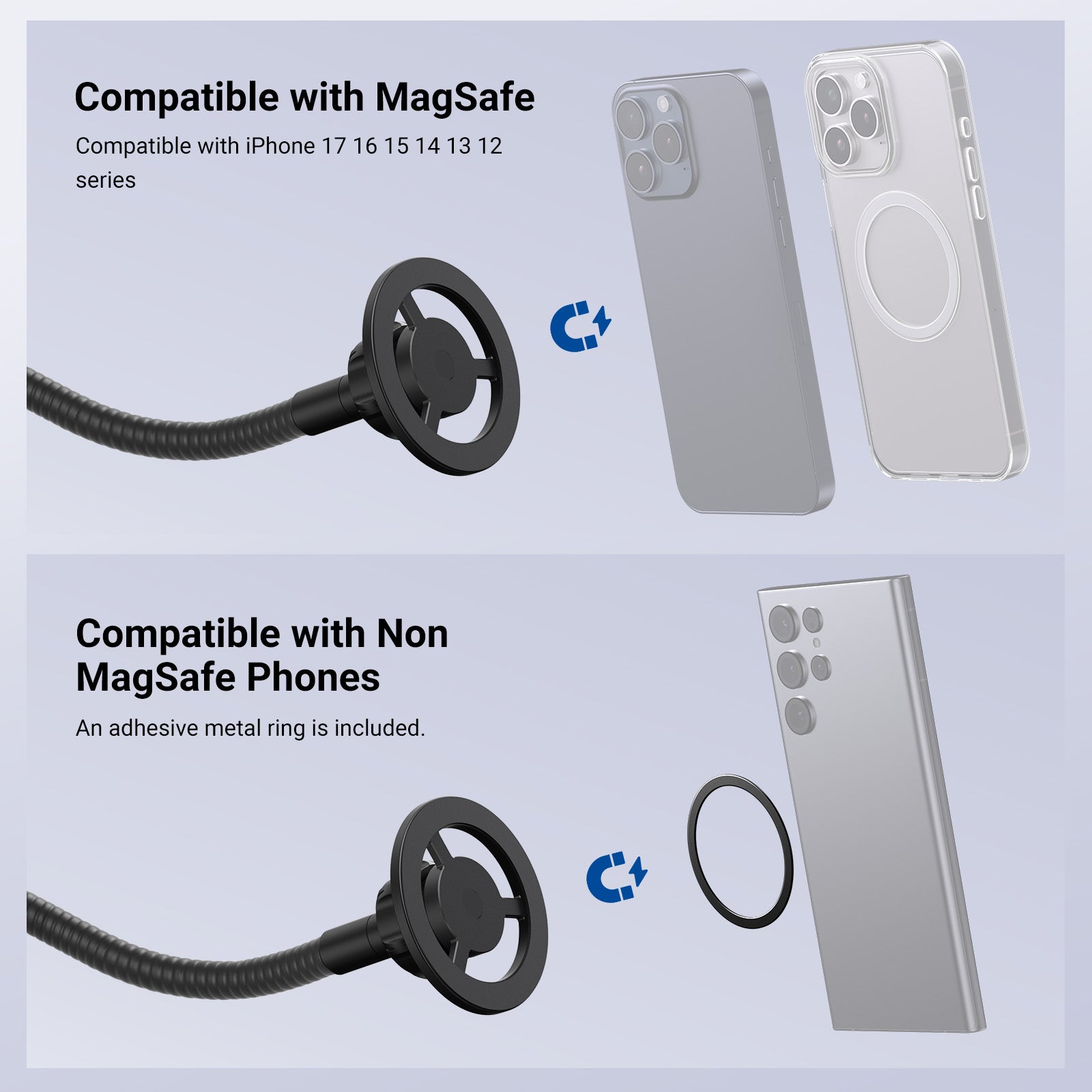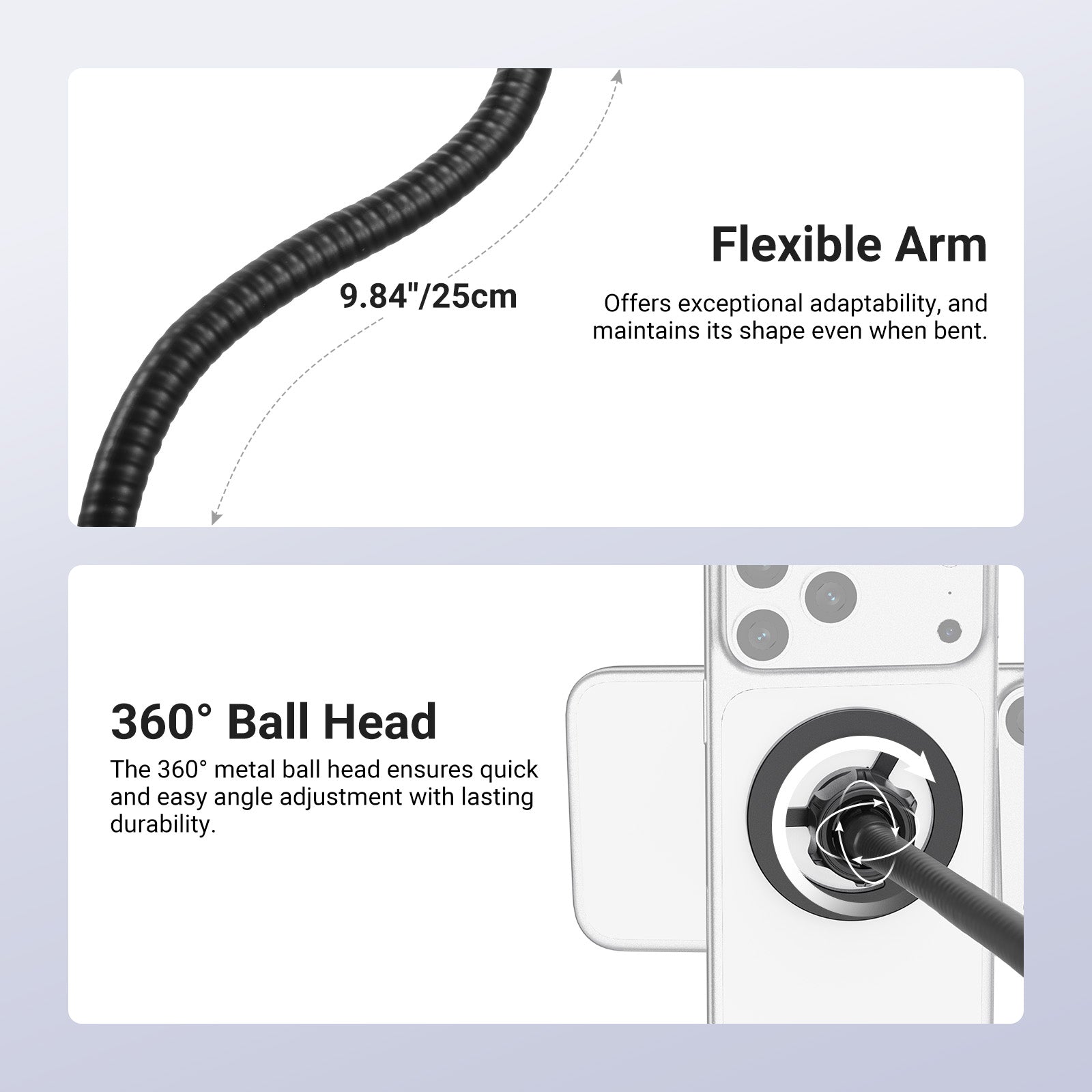 - Ajuste flexible y suave : El brazo flexible de 20 cm (7,9") ofrece una adaptabilidad excepcional, manteniendo su forma incluso doblado. Su rótula superior gira 360° para que su teléfono se mantenga seguro en cualquier ángulo o altura. Ya sea para discursos, reuniones, karaoke, presentaciones en el escenario, presentaciones de grupos musicales, grabaciones en estudio, transmisiones en vivo y clases en línea, el soporte para teléfono con clip siempre estará a su alcance.