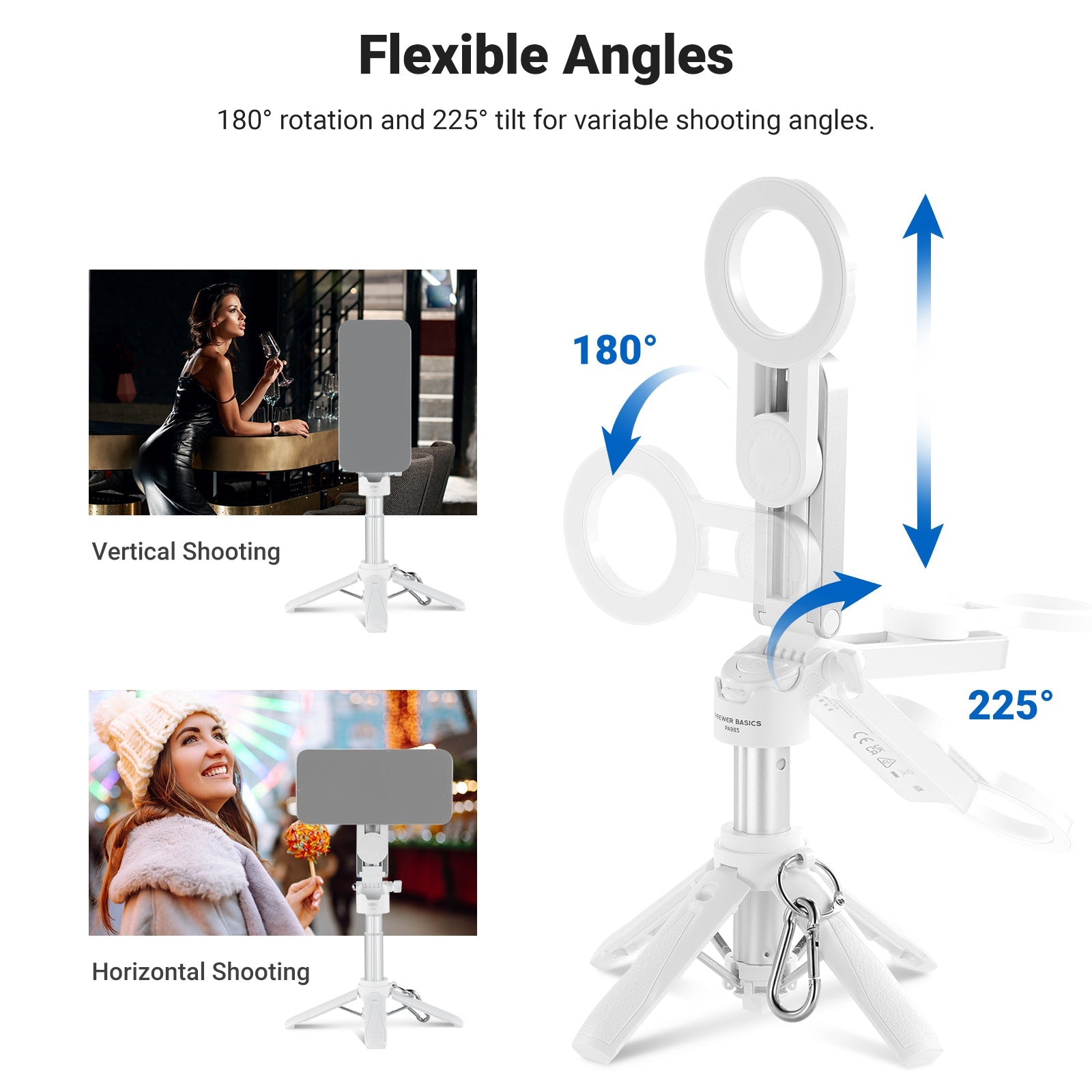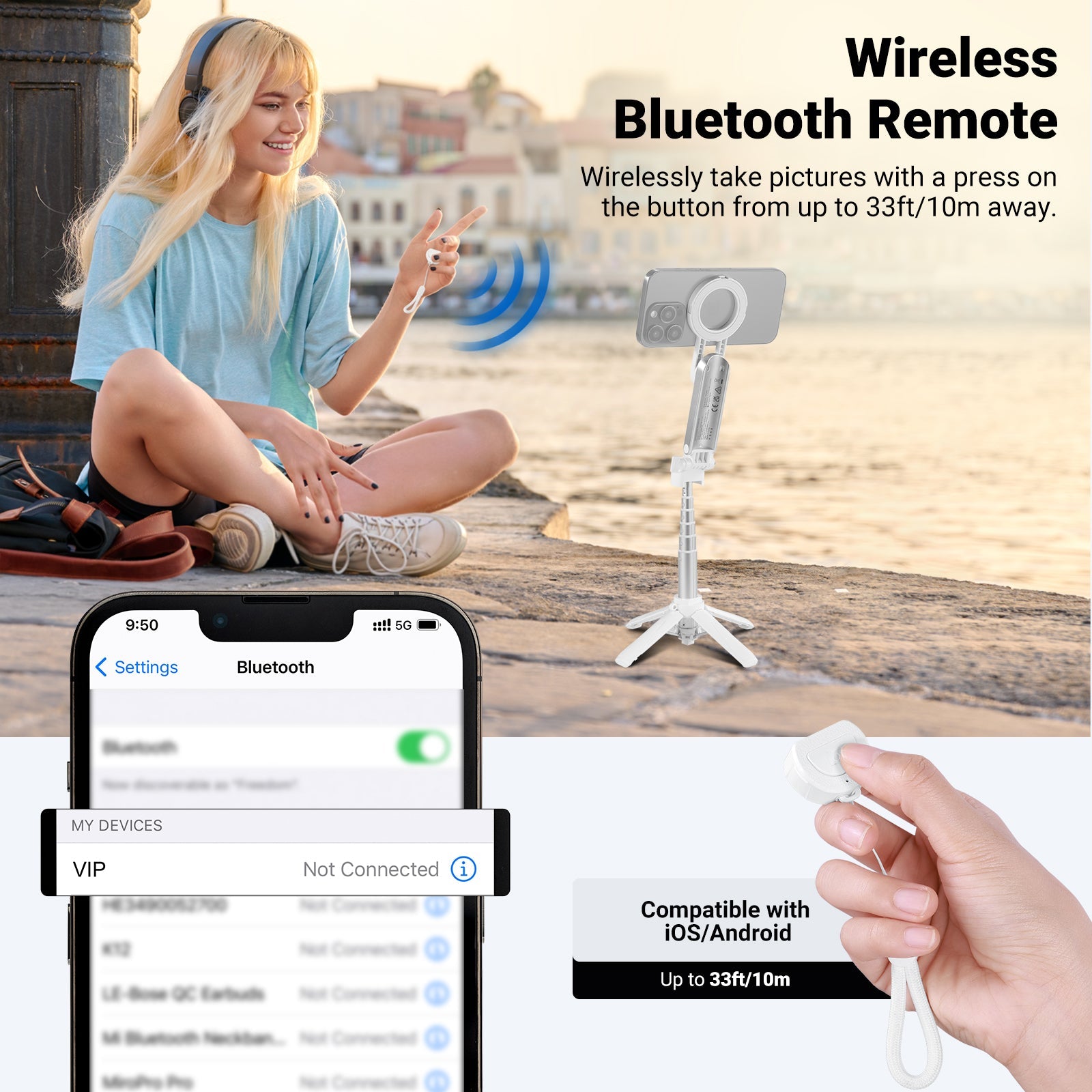 - Soporte versátil para teléfono con palo selfie : Este equipo multifuncional 3 en 1 combina un palo selfie, un trípode de viaje y una abrazadera para teléfono celular para vlogs de YouTube/TikTok, grabación de video, transmisión en vivo, diarios de viaje, fotografía, videoconferencias, llamadas de Zoom y más. Plegable hasta 10 cm y ligero (119 g), este equipo cabe fácilmente en tu bolsillo para grabar en exteriores.