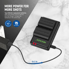 - Doble duración de la batería : diseñada para disparos prolongados, la empuñadura de la batería puede acomodar hasta dos baterías LP-E6/LP-E6N/LP-E6NH de 2250 mAh (incluidas) y viene con un cargador de batería dual USB para cargar ambas baterías simultáneamente. Para una fuente de alimentación continua, conecte la empuñadura de la batería a un enchufe de pared mediante un acoplador de CC (se vende por separado). Para una fuente de alimentación continua, conecte la empuñadura de la batería a un enchufe de pared mediante un acoplador de CC (se vende por separado). Nota: Retire las baterías si la empuñadura de la batería no se utiliza durante mucho tiempo
