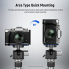 - Disparo horizontal y vertical : tanto las placas laterales como las inferiores con ranura tipo Arca, compatibles con las abrazaderas de liberación rápida del sistema Arca Swiss o cabezales de tropo, pueden cambiar fácilmente entre disparo horizontal y vertical, ideal para fotógrafos que necesitan cambiar con frecuencia entre las dos composiciones.