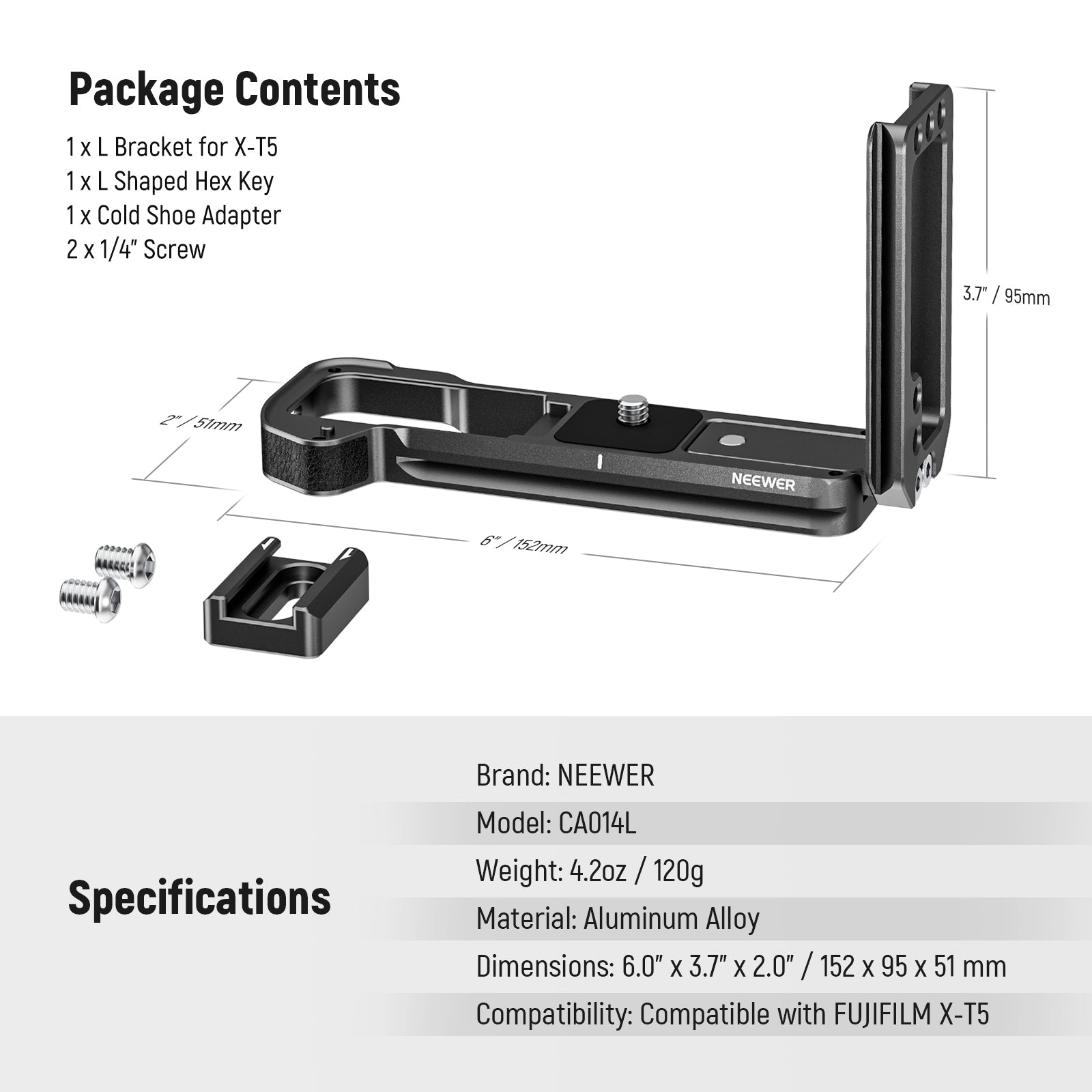 Soporte en L NEEWER CA014L X-T5 compatible con FUJIFILM X-T5