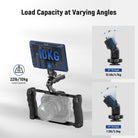 • Sólido y liviano : la jaula de la cámara (peso: 22,9 oz / 650 g, carga máxima: 33 lb / 15 kg), el asa superior (peso: 5,1 oz / 145 g, carga máxima: 22 lb / 10 kg) y el soporte del monitor (peso: 1,9 oz / 55 g, carga máxima: 10,4 lb / 4,7 kg a 30°; 7,3 lb / 3,3 kg a 45°) están fabricados con una aleación de aluminio anodizado negro liviana pero robusta, soporte estabilizador de película profesional para grabación de video, filmación, vlogs de YouTube / TikTok, realización de películas en interiores y exteriores como creador de contenido esencial, el influencer creador de videos debe tener equipo
