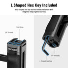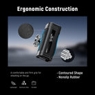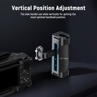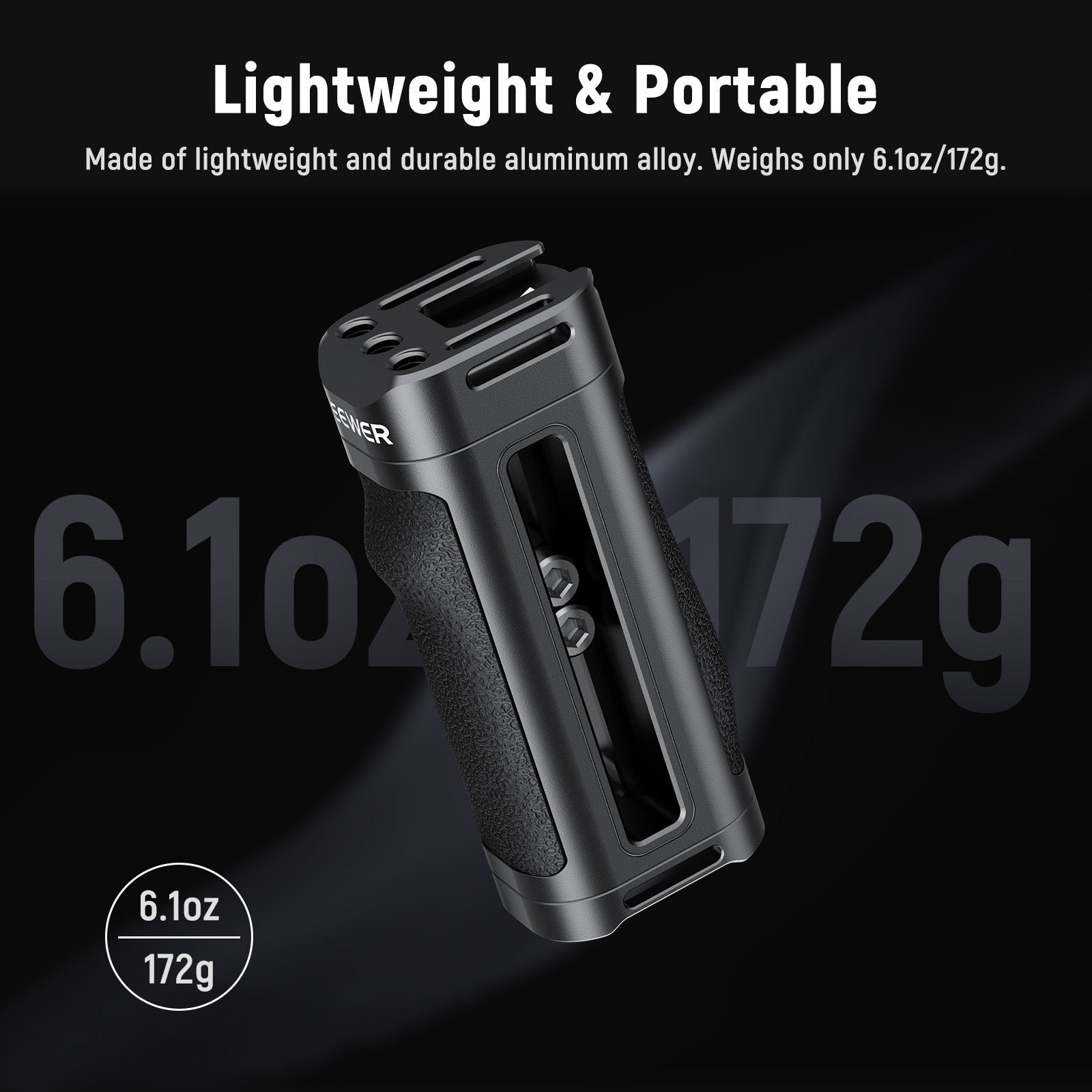 - Mango ergonómico contorneado : hecho de ABS, PC y aleación de aluminio, este mango lateral para cámara es duradero pero liviano. El mango de silicona antideslizante contorneado le brinda un agarre cómodo y firme para grabar en exteriores