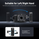 - Adecuado para mano izquierda/derecha : diseñado para operación con mano izquierda y derecha, el conector del mango se puede desmontar e instalar en cualquier lado de la jaula de la cámara. También incluye una ranura para cordón para evitar caídas (el cordón se vende por separado)