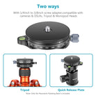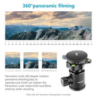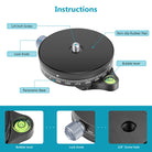 - La placa panorámica es el accesorio ideal que gira libremente para obtener impresionantes fotografías panorámicas. Se puede utilizar con casi todos los cabezales esféricos comerciales y, debido a su diseño plano y estable, se puede montar entre el trípode y el cabezal esférico o entre el cabezal esférico y la cámara.