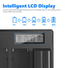 - Una pantalla LCD con retroiluminación te mostrará claramente el estado de carga de cada batería, ya sea de día o de noche.