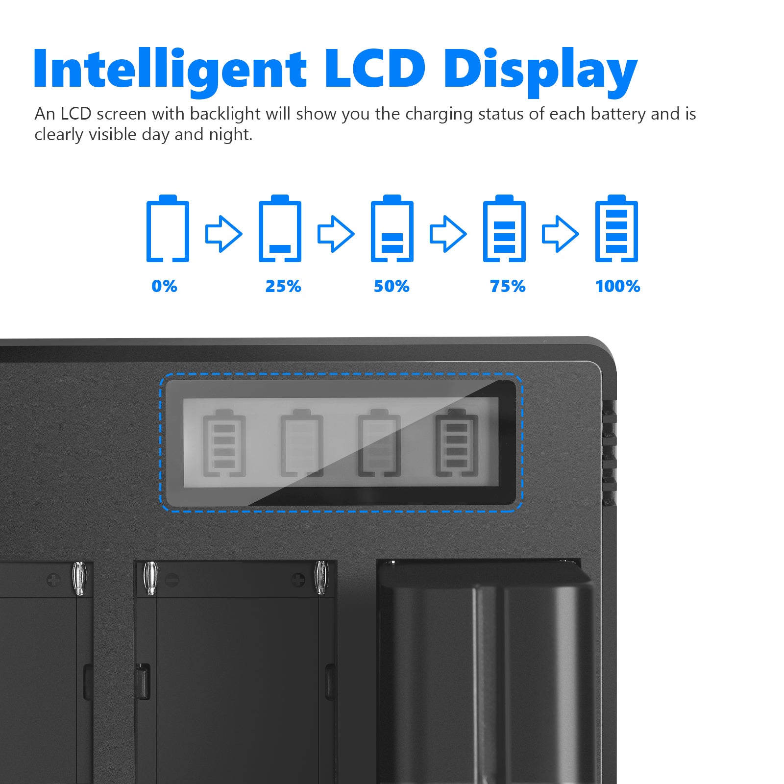 - Este cargador de 4 canales Neewer carga cuatro baterías NP-F simultáneamente. Transfiere corriente de 2A al cargar 1 o 2 baterías y corriente de 1A al cargar 3 o 4.