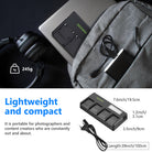 - Ligero y compacto, este cargador es portátil para fotógrafos y creadores de contenido que están constantemente fuera de casa.