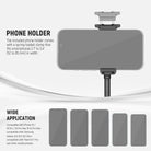 - Ampliable con zapata fría : la abrazadera para teléfono del trípode de mesa de arriba está equipada con un soporte de zapata fría en cada lado, lo que permite colocar luces de relleno, micrófonos y otros accesorios mientras asegura su teléfono en su lugar, mejorando la iluminación y la captura de sonido para grabaciones profesionales y tomas creativas con teléfonos inteligentes