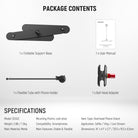 - Plegable y portátil : simplemente despliega las patas divididas de la base, instala el adaptador de cabeza esférica y el tubo flexible, y estarás listo para usar. La estructura de soporte de tres secciones de la base permite un soporte trapezoidal estable, al mismo tiempo que es conveniente para plegar, almacenar y transportar.