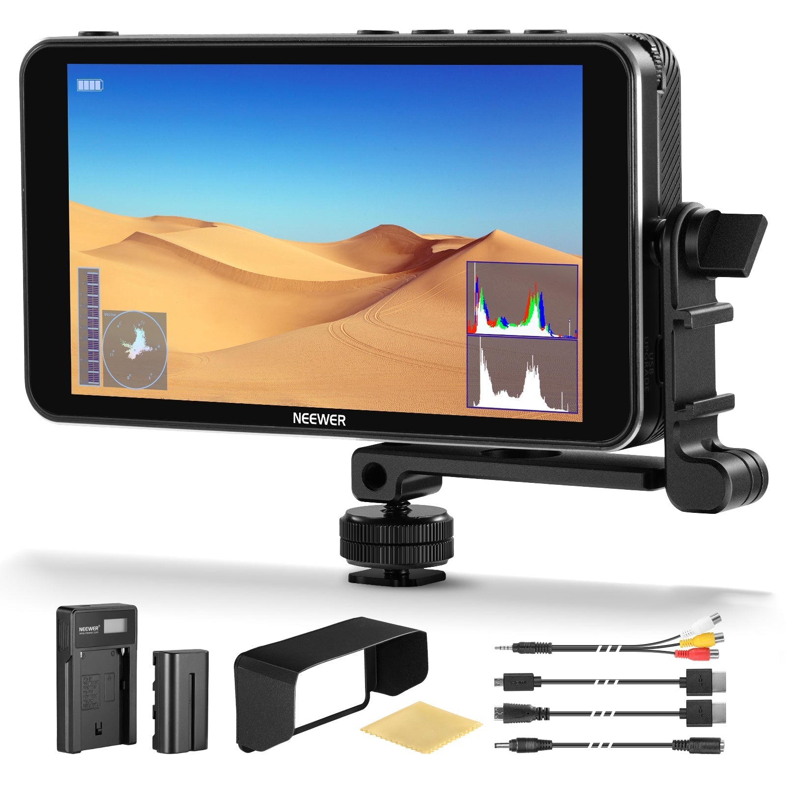- Monitoreo profesional y versátil : el F400 Pro viene con funciones de nivel profesional como alcance de forma de onda RGB, alcance vectorial, histograma, nueve cuadrículas, asistencia de enfoque máximo, colores falsos, exposición, zoom, audio integrado y más, para lograr los resultados deseados en un solo paso y simplificar el proceso de postproducción. Los botones de función personalizables (F1, F2, F3) para un acceso rápido a las funciones utilizadas con frecuencia. Firmware actualizado mediante un cable tipo C (no incluido)