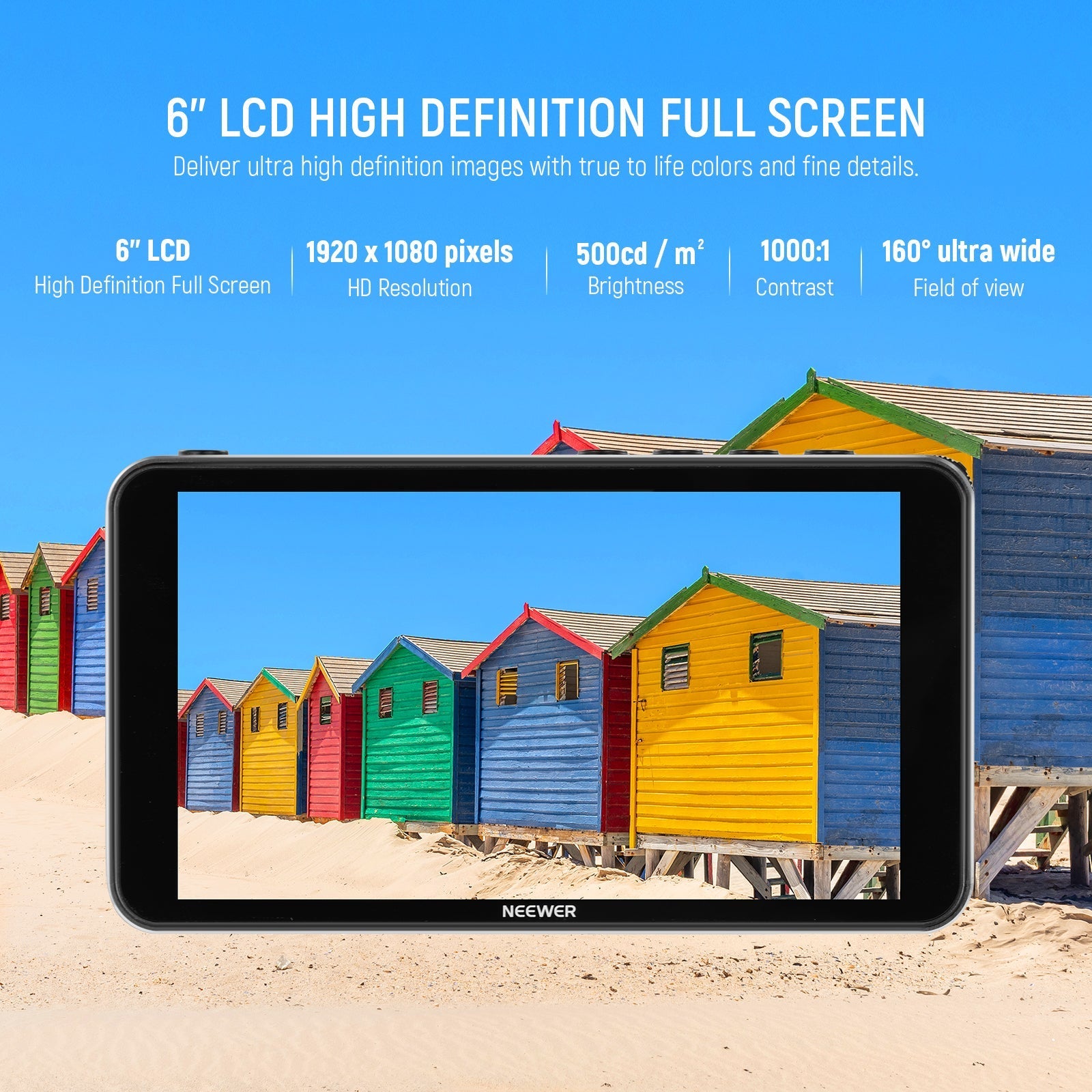 - Ángulo de visión amplio de 160°, imagen más nítida y más detalles : pantalla completa LCD de alta definición de 6 pulgadas con resolución de 1920 x 1080, brillo de 500 cd/m², relación de contraste de 1000:1 y profundidad de color de 8 bits para imágenes claras y vívidas con fidelidad a Detalles de la vida, sin importar si está montado en una cámara DSLR, cámaras sin espejo o estabilizador de cardán. La visión ultra amplia de 160° mejora la claridad de los detalles y un parasol extraíble para reducir el deslumbramiento en exteriores. Nota: Este monitor sólo es compatible con cámaras Canon Nikon Sony.