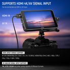 - Admite entrada de señal HDMI/AV 4K : las interfaces de entrada HDMI y AV para monitoreo en tiempo real sin demora mientras se mantiene la calidad de video original. Este pequeño monitor HD admite entrada HDMI de 4K UHD 3840X2160p (30/29,97/25/24/23,98Hz), 4096X2160p (24Hz), 480i/480p/576i/576p/720p/1080i/1080p y entrada de señal analógica AV de PAL. NTSV, SECAM y otros sistemas. También admite monitoreo de audio simultáneo a través de un conector para auriculares de 3,5 mm (auriculares no incluidos)