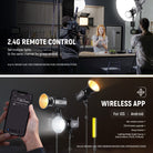 - Aplicación Infinity y control inalámbrico 2.4G : la aplicación NEEWER admite el control grupal y las actualizaciones de firmware OTA. También proporciona fuente de luz, música FX y otras funciones para un control avanzado de la iluminación. El sistema 2.4G integrado admite el control grupal de diferentes modelos (SL90 Pro, RGB1, RGB C80, RGB 1200, MS60C, MC60B, MS150B, BH30S, FS150B, CB200B y CB60B) en los canales 00-99. Cuando todas las luces están configuradas en el mismo canal, configurar una luz puede hacer que las demás cambien al mismo tiempo.