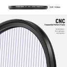 - Marco ligero de aleación de aluminio anodizado : el marco ultrafino ayuda a reducir el viñeteado y las esquinas oscuras cuando se monta en una lente gran angular. El marco de aleación de aluminio anodizado y mecanizado por CNC está diseñado para durar, ser antiabrasivo y resistente a la erosión.