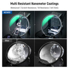 - Vidrio óptico HD con revestimiento multirresistente : el filtro está hecho de vidrio óptico HD de primera calidad y está bien pulido para ofrecer una transmisión de luz uniforme y garantizar la nitidez de la imagen. El filtro multicapa evita eficazmente que la lente se raye y los revestimientos de 28 capas hacen que el filtro sea repelente al agua y resistente al aceite.