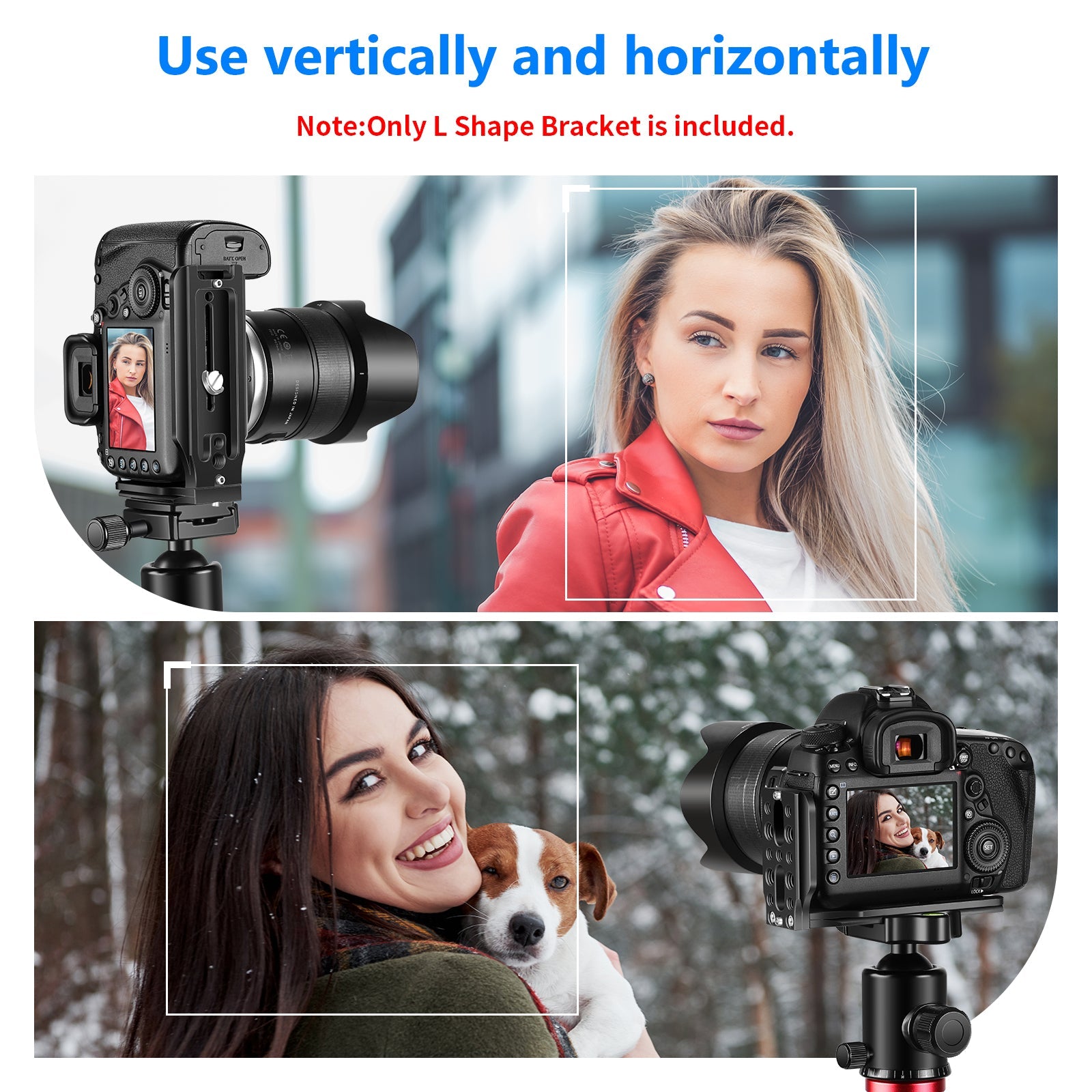 - COMPATIBILIDAD : Hay una placa QR corta con perilla de tornillo estándar Arca-Swiss y una placa QR larga en forma de L compatible con la mayoría de las cámaras DSLR con estándar Arca-Swiss. Con tornillo de 1/4, se puede utilizar con los modelos de cámara Nikon D7500/D800/D810/D750/D850/D700/D7000/D7100/D7200/D90/D3400/3300/5600/5300 Canon 450D/700D/750D/5D2/ 5D3/5D4/600D/70D/80D/800D Sony a9/a7iii/a7riiii//a7ii/a7rii/A7Sii/a6000/6300/6500 PANASONIC GH3/4/5, etc.