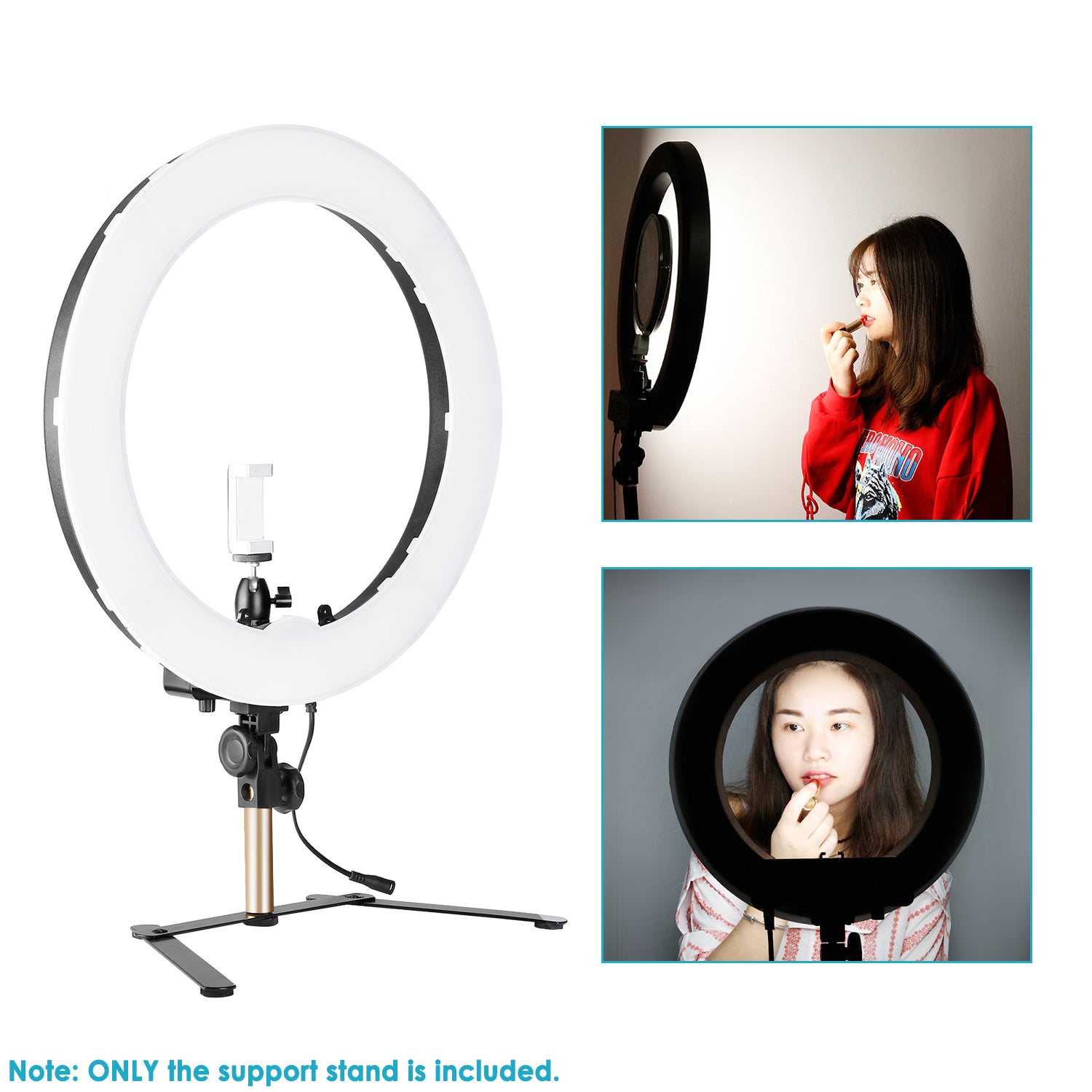 - APLICACIÓN AMPLIA: Este soporte de mesa es ideal para soportar un anillo de luz que proporciona una iluminación adecuada cuando te maquillas, te tomas selfies, tienes un show en vivo o un programa de conversación en línea y tomas videos de YouTube.