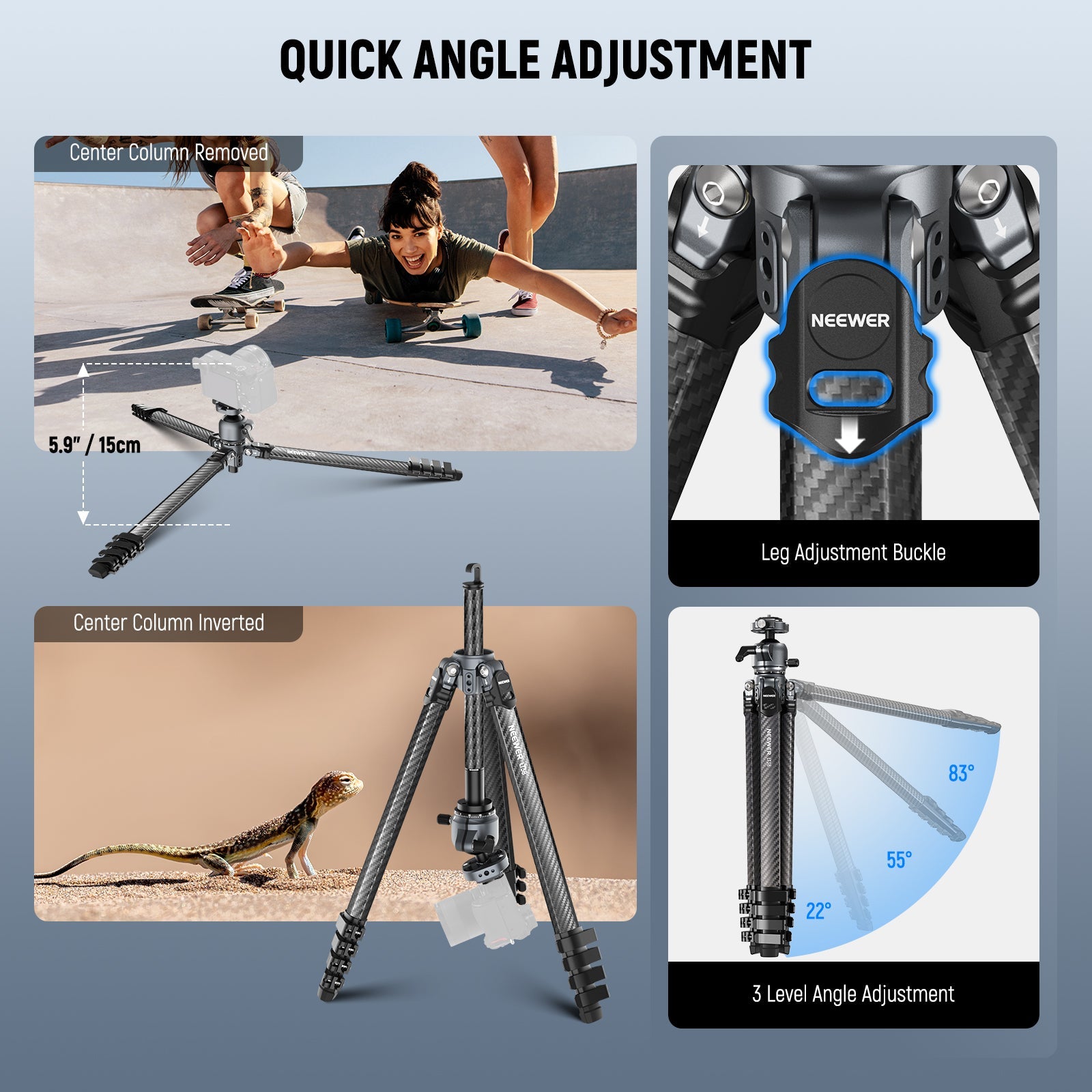 Trípode de viaje NEEWER LT38 LITETRIP de fibra de carbono de 61"/155 cm