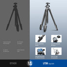 - Trípode de viaje compacto, ligero pero estable : fabricado con fibra de carbono, este trípode para cámara compacto LITETRIP LT38 pesa solo 1,43 kg, pero aumenta su capacidad de carga máxima a 10 kg, e incluso está mejorado con hebillas de ajuste de altura totalmente metálicas y pies de goma antideslizantes para una mayor estabilidad. Las patas ajustadas se pliegan hasta un diámetro de 7 cm cuando se sostiene con la mano y una longitud plegada compacta de 50 cm, con una bolsa de almacenamiento para transportarlo fácilmente.