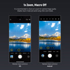- Campo de visión amplio de 220° en la cámara principal : se utiliza en la cámara principal; esta lente ojo de pez con un campo de visión gran angular de 220° es perfecta para fotografías creativas de paisajes, paisajes urbanos y conciertos musicales.