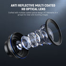- Lente óptica HD con revestimiento múltiple antirreflejo : el vidrio óptico HD de primera calidad garantiza tomas nítidas. Fabricado con un diseño óptico con revestimiento múltiple de 5 elementos en 4 grupos para obtener imágenes nítidas e impresionantes