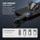 - Clip para lente de teléfono con rosca de 17 mm : el clip para lente de teléfono puede conectar la lente de forma segura y es compatible con iPhone 16 Pro Max, iPhone 15 Pro Max, Samsung Galaxy S24 Ultra y otros teléfonos inteligentes. La lente también es adecuada para carcasas, fundas y placas traseras de teléfono NEEWER con roscas de 17 mm
