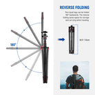 - Trípode/Monópode Fácilmente Convertible: Este diseño de trípode/monópode es práctico para exteriores, especialmente para fotografía de viajes. Si se siente cansado, retire rápidamente la columna central, separe una pata del trípode y conéctelas para obtener un bastón de alpinista o de senderismo improvisado, con una altura que varía entre 56,5 cm (22,2") y 213 cm (83,8"). También incluye una bolsa de transporte para facilitar su transporte.