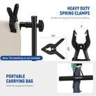 - Abrazaderas de fondo reforzadas : cuatro clips de resorte reforzados para soporte de fondo aseguran fondos de poliéster/muselina, papel sin costuras y lienzo en su lugar. La apertura de la mandíbula de 2"/5 cm y las almohadillas giratorias sostienen fondos de varios espesores.