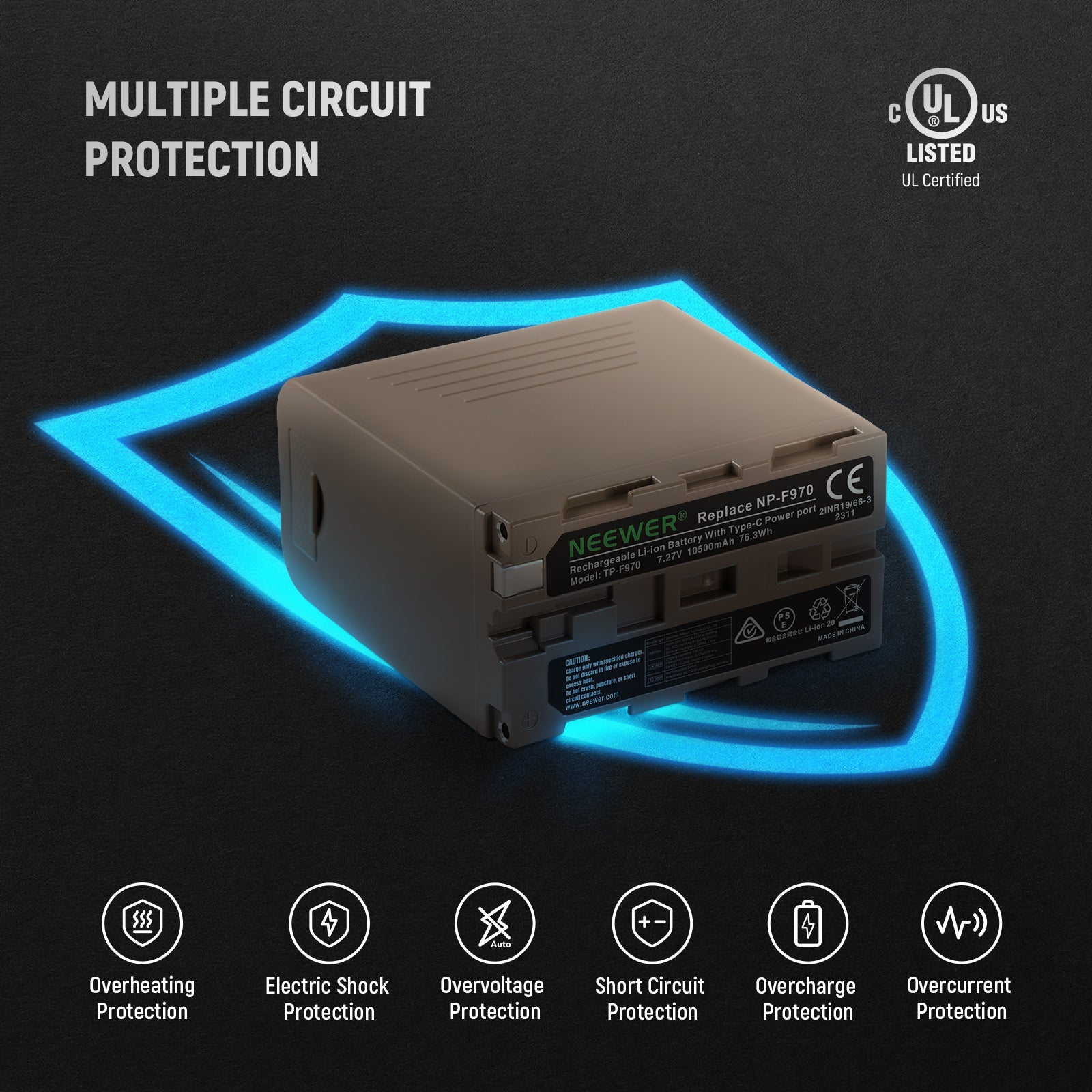 - Capacidad de 10500 mAh para fuente de alimentación extendida : la batería de repuesto recargable NEEWER TP-970 presenta una alta capacidad de 10500 mAh (7,2 V 76,34 Wh) para una mayor duración de la batería. Fabricado con celdas de primera calidad, proporciona energía de batería abundante y constante para capturar cada momento maravilloso de la vida.