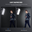 - Rejilla de panal y difusores personalizables : para diversos escenarios de disparo y estilos de fotografía, ya sea retrato, naturaleza muerta o transmisión en vivo, una rejilla de panal hace que la iluminación sea más confinada y direccional, y dos paneles de difusión que se fijan mediante sujetadores táctiles pueden suavizar el brillo y eliminar las sombras.