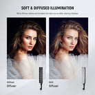 - Panel de difusión desmontable : un panel de difusión blanco desmontable que se fija a la rejilla de luz mediante sujetadores táctiles puede suavizar la fuente de luz para una distribución uniforme de la luz.