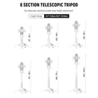 - Ajuste flexible de altura : Cuatro secciones telescópicas ofrecen un ajuste flexible de altura de 22 a 37 cm (9 a 15 pulgadas). Las patas del trípode se mantienen estables sobre el escritorio y cuentan con texturas antideslizantes para un agarre firme. Incluye un cordón para evitar caídas accidentales.
