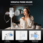 - Soporte universal para teléfono de 360° : con un rango de apertura de 60 a 85 mm (2,4 a 3,3 pulgadas), la abrazadera es compatible con iPhone 16 Pro Max, iPhone 15 Pro Max, Samsung Galaxy S24 Ultra y otros smartphones. La rotación de 360° permite disparos verticales y horizontales, mientras que la inclinación de 225° ofrece ángulos de cámara variables.