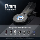 - Diseñado para lentes con rosca de 17 mm : la abrazadera universal para lentes de teléfono de Neewer está diseñada específicamente para sujetar y soportar lentes con rosca de 17 mm, lo que brinda a los usuarios una solución de montaje de lentes precisa y confiable para todo tipo de necesidades de fotografía de nivel profesional y aficionado. Nota: Los orificios roscados son de aleación de aluminio oxidado, el desmontaje de la lente puede causar desgaste del revestimiento, pero no afecta el uso